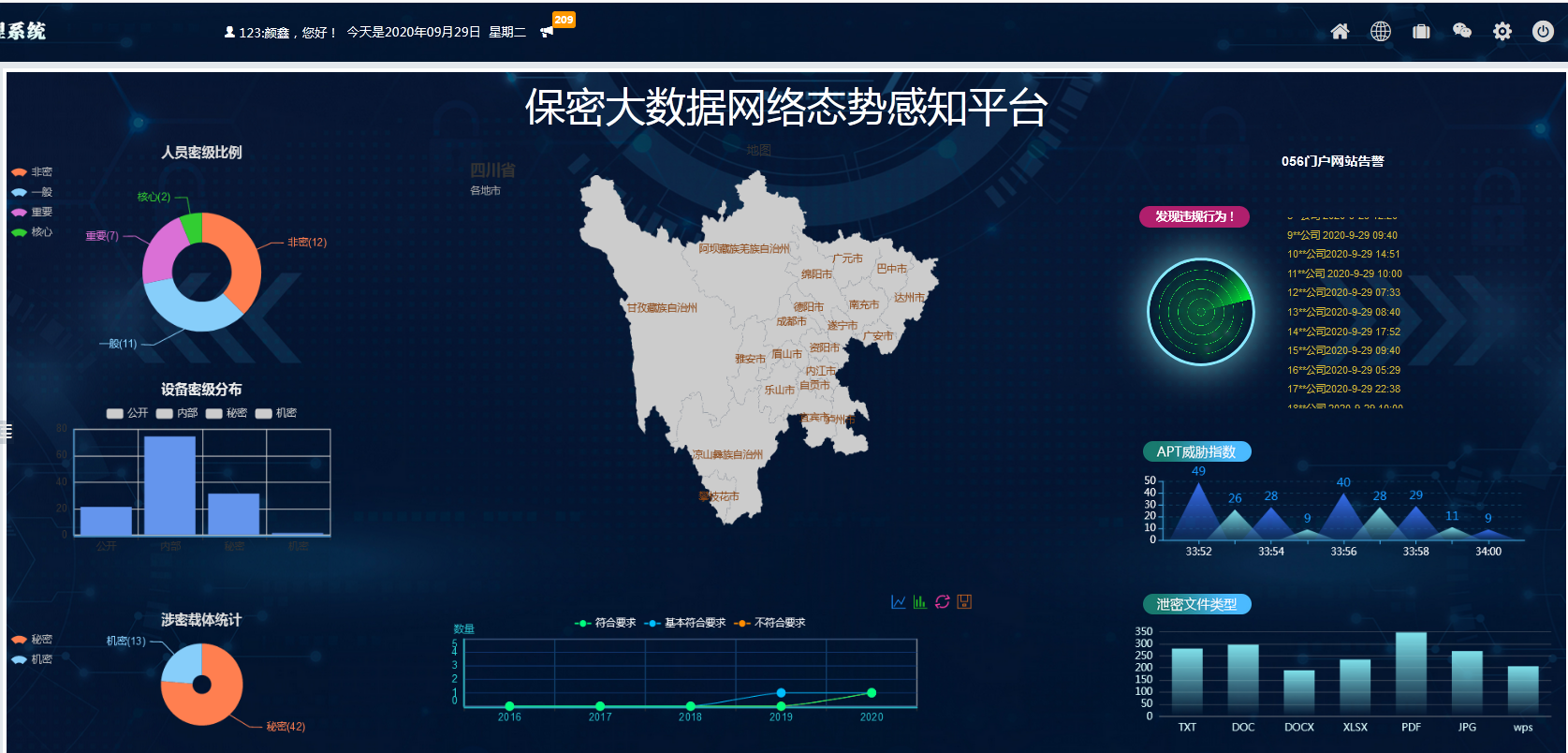 国产化保密综合管理平台采用先进的软件技术,具有“三位一体”的保密防护手段,全面适应国产化平台,具有领先性和划时代的意义。以国家《保密法》为指导,紧扣《军工保密资格审查认证标准》226条,覆盖了保密资格审查以及标准中226项要求中的89%以上,以用户需求为指导,对各项保密管理内容实施全过程、全方位管控。